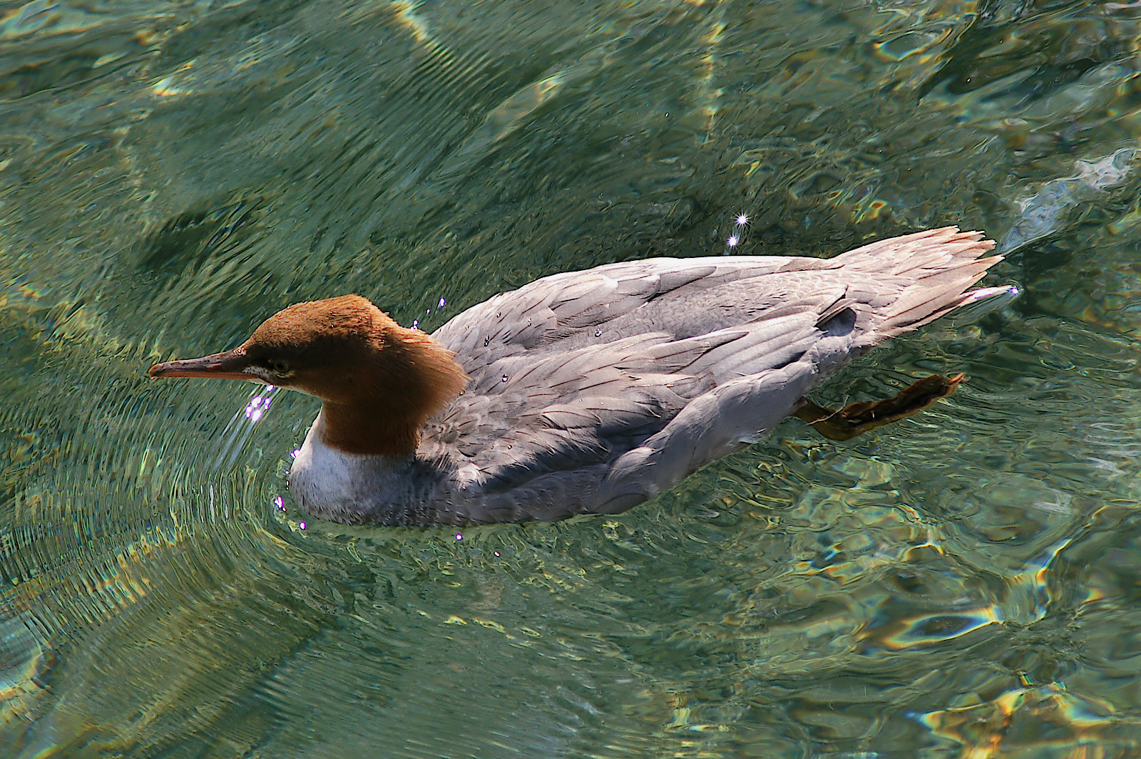 7. Разбира се птиците се цопкат с все сили в езерото. Раздвижена снимка с хванати водни пръски – въздуха пък, с чайките. Благодаря.