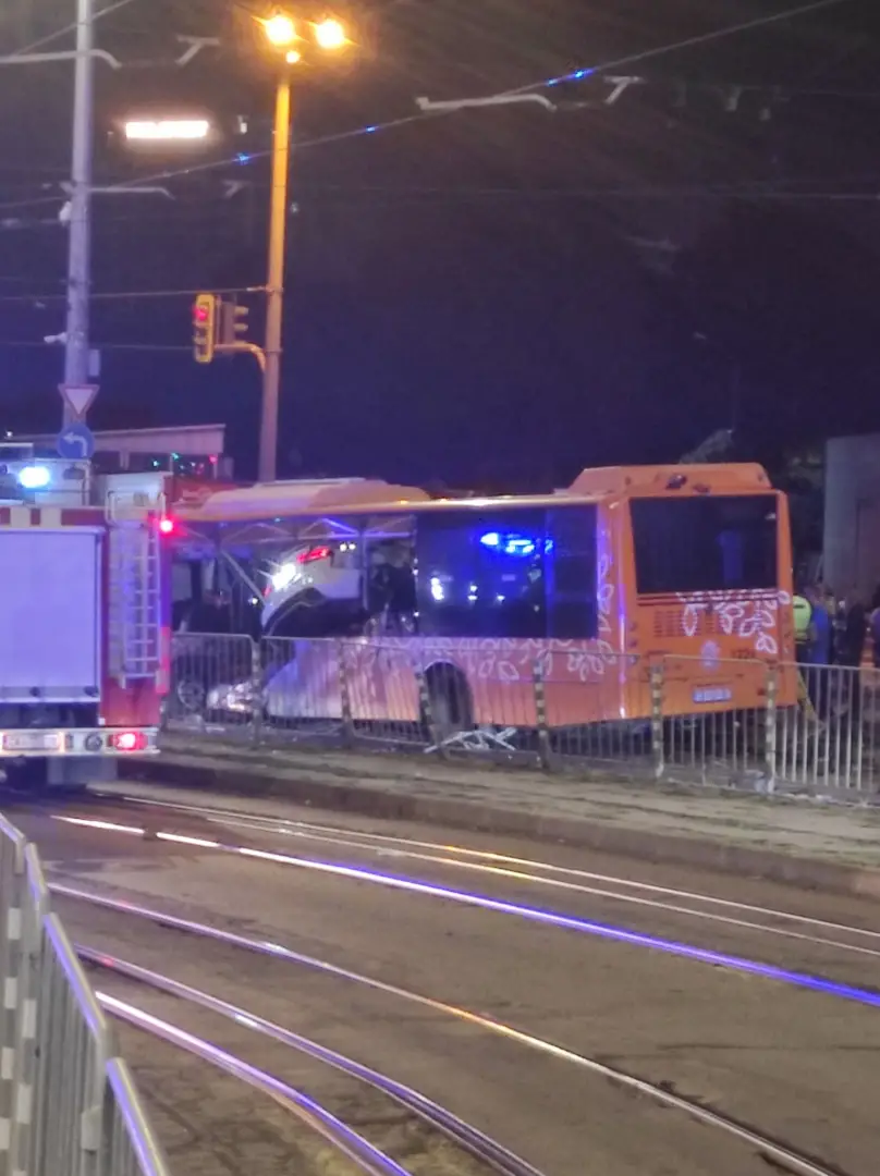През две трамвайни линии и две огради - право в салона на автобуса! Яяяяяя! И не е каскадьор!